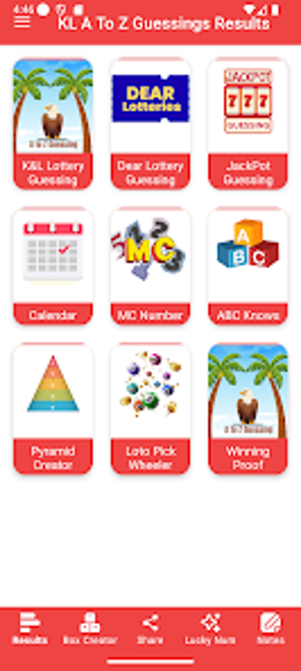 تطبيق KL A TO Z Guessing Lottery هو تطبيق مجاني لنظام Android مصمم للمستخدمين الذين يرغبون في الوصول السريع إلى أحدث نتائج اليانصيب. يقدم هذا التطبيق للأدوات والمرافق واجهة سهلة الاستخدام تسمح بالتنقل السهل، مما يجعل من البسيط للمستخدمين تتبع نتائج اليانصيب الحالية والتاريخية دون أي متاعب. مع عدم الحاجة للتسجيل، يمكن للمستخدمين الاستمتاع بالوصول الفوري إلى المعلومات التي يحتاجونها دون عبء التسجيل.